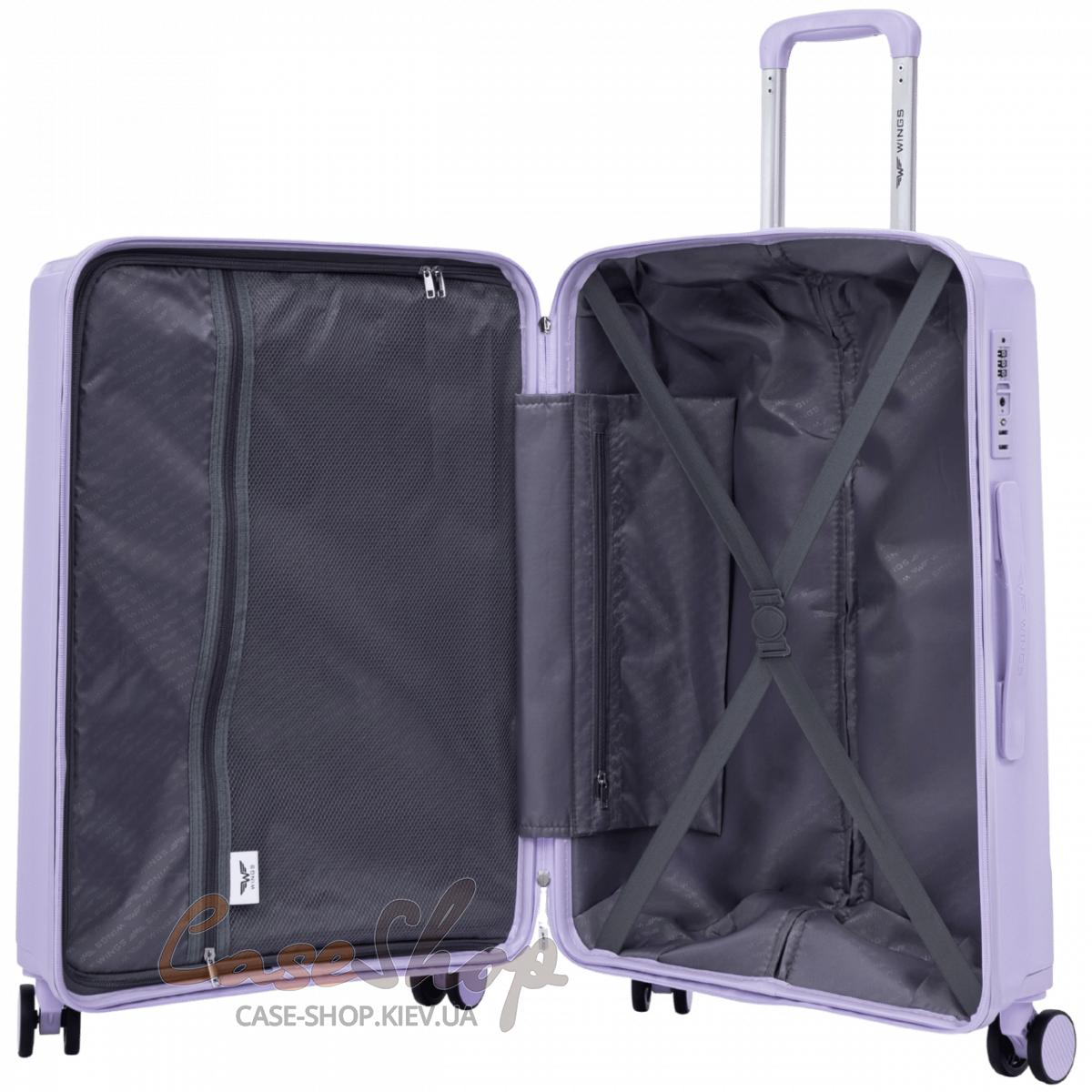 Чемодан большой 4 колеса CKT01/L white purple WINGS (Польша)