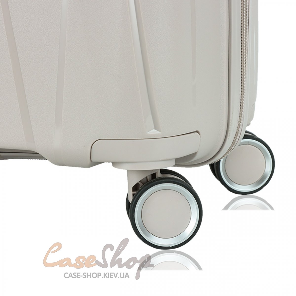 Бесшумное и плавное перемещение обеспечивают полиуретановые колеса на подшипниках, вращающиеся на 360 град, придавая чемодану дополнительную манёвренность и давая возможность перемещать его в вертикальном положении. Внутри чемодана имеется 2 отделения, одно с внутренними ремнями крепления багажа, другое закрывается на молнию.