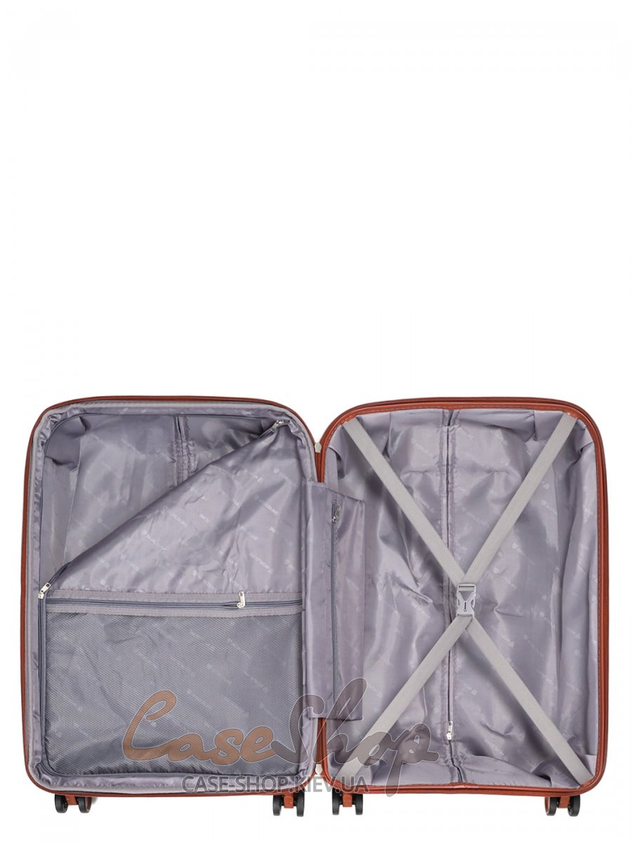 Внутри чемодана имеется 2 отделения, одно с внутренними ремнями крепления багажа, другое закрывается на молнию.