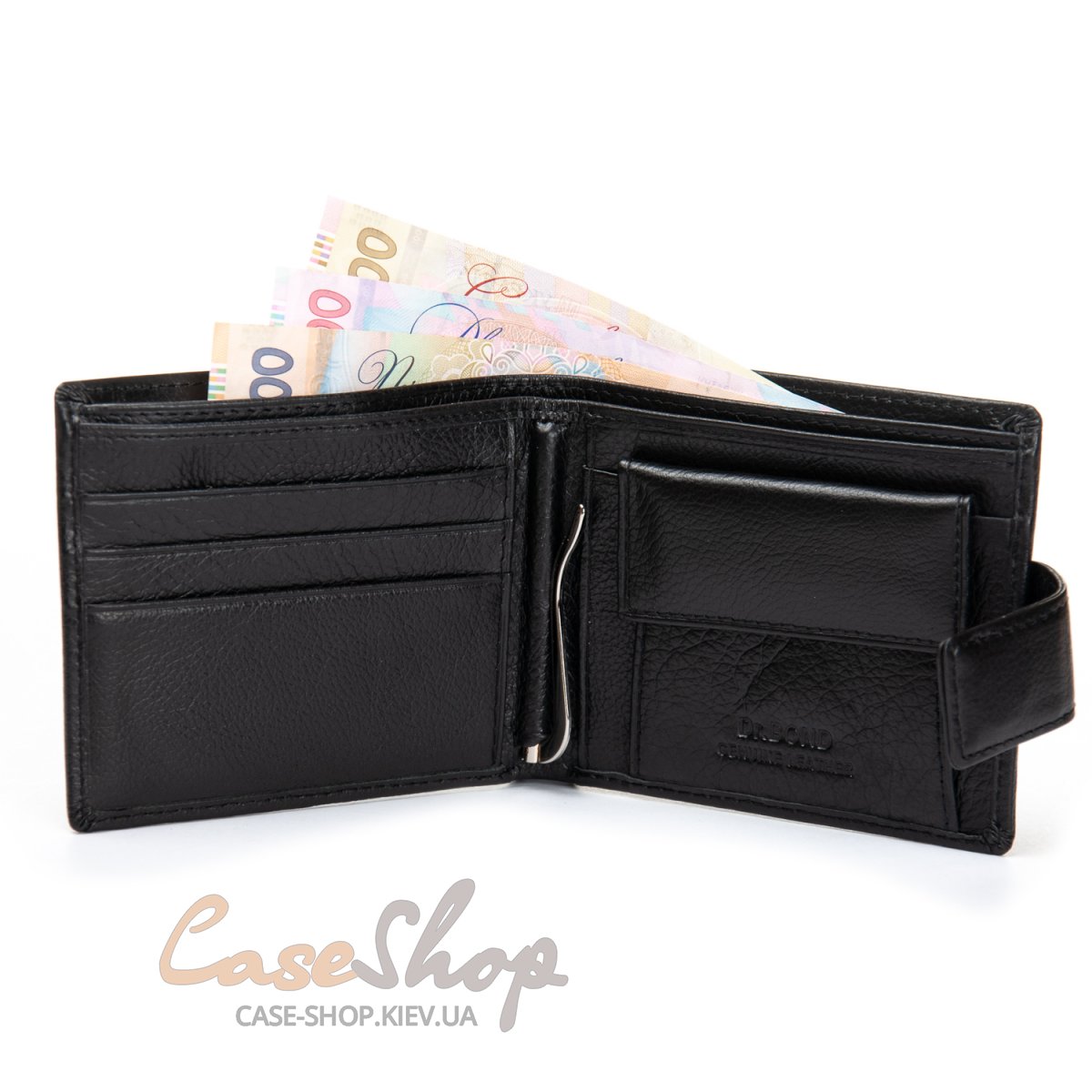 Мужской кожаный кошелек Dr.Bond с зажимом для денег, закрывается на клапан с магнитом. Изготовлен из мягкой натуральной кожи. Кожаные перегородки в отделениях для банкнот. Три отделения для банкнот, одно из которых закрывается на молнию. Монетница на кнопке и три кармана для карт. Снаружи на обратной стороне открытый карман.