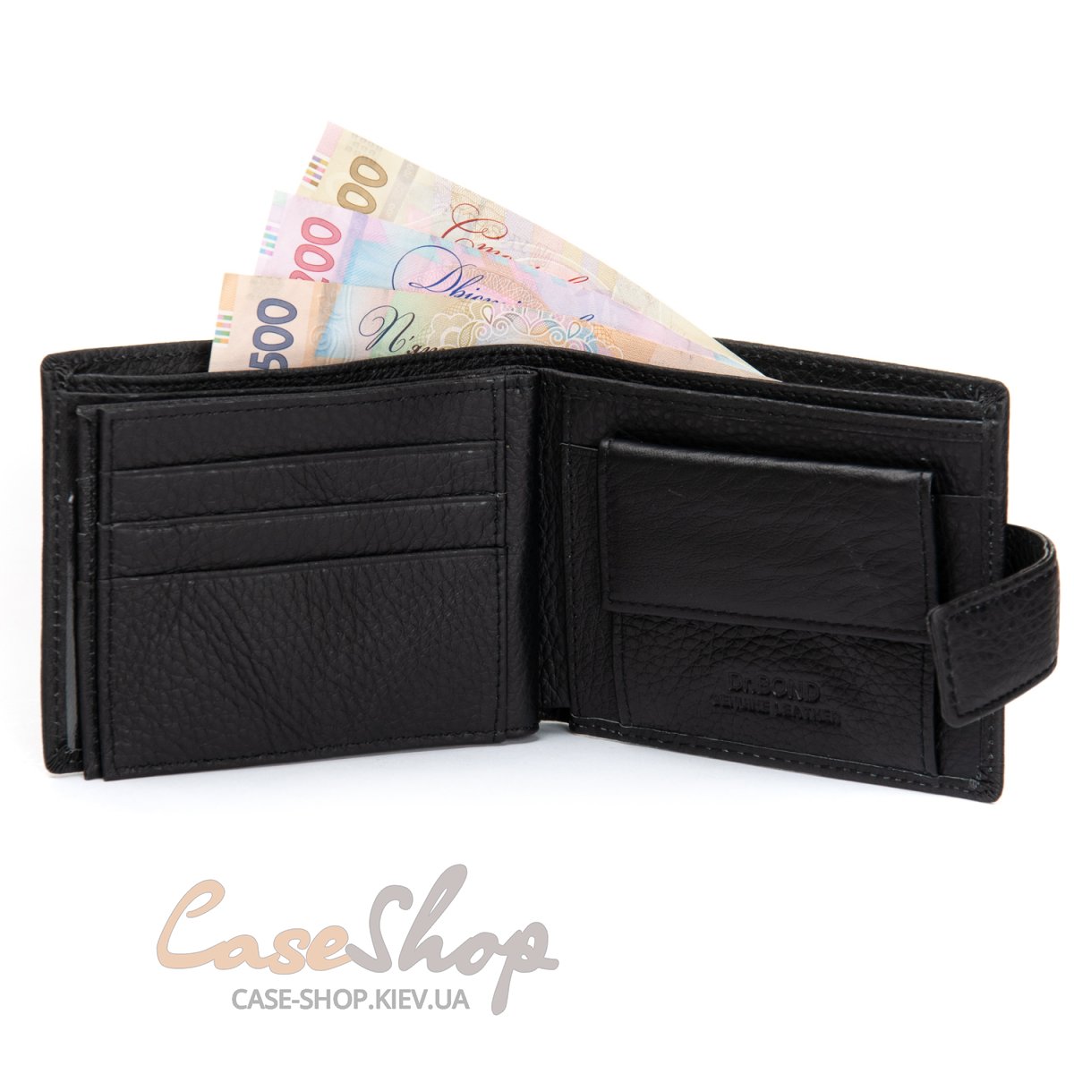 Мужской кожаный кошелек Dr.Bond изготовлен из мягкой натуральной кожи. Кошелек закрывается на клапан со скрытым магнитом. Кошелек имеет кожаные листки в отделениях для банкнот. Для банкнот есть два открытых отделения и одно на молнии. На откидном блоке кошелька находятся 6 отделений для визитных карточек и 3 больших прозрачных отделения. Кошелек имеет удобную монетницу на кнопке.