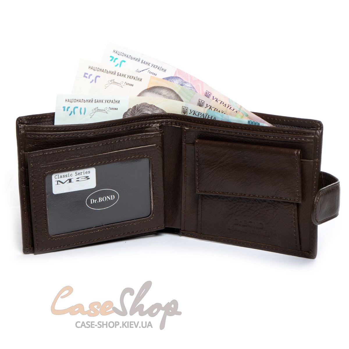Кожаное мужское портмоне Dr.Bond 3 отделения под банкноты (1 змейка), внутри – отделение для мелочи, 2 откидных блока на клапане с прозрачными карманами под документы и карты, 2 больших кармана. Закрывается на клапан.