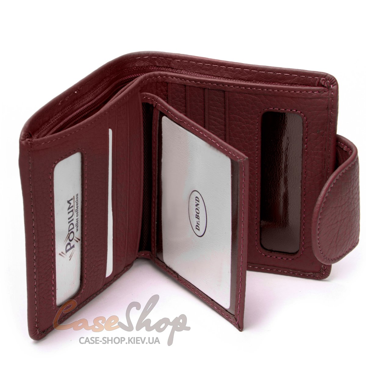 Удобный женский компактный кожаный кошелек Dr.Bond Кошелек изготовлен из натуральной мягкой кожи. Кошелек складывается вдвое и закрывается клапаном на магните. Внутри кошелька находятся два больших открытых отделения для банкнот (разделенные кожаной перегородкой) и одно отделение на молнии. Кошелек имеет 12 слотов для визитных карточек, 4 из которых выполнены прозрачными. Снаружи кошелька на оборотной стороне есть монетница на кнопке.
