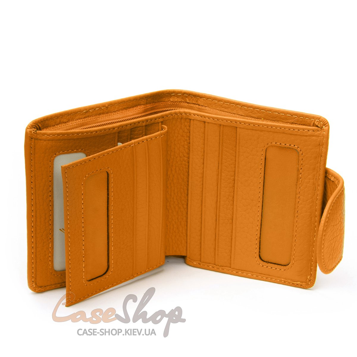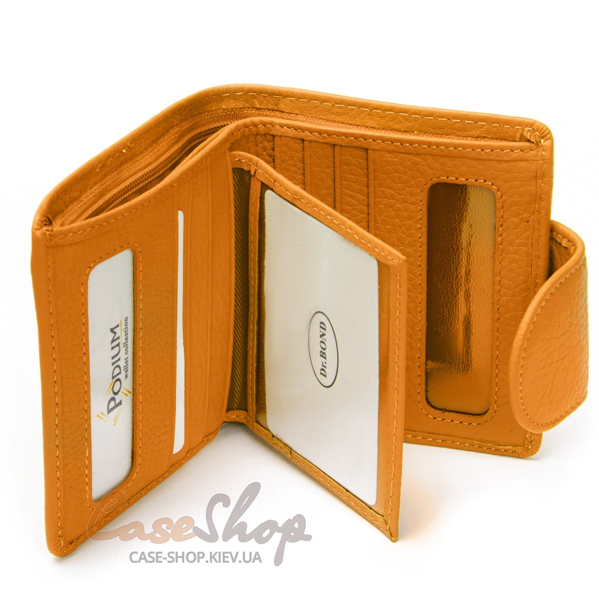 Удобный женский компактный кожаный кошелек Dr.Bond Кошелек изготовлен из натуральной мягкой кожи. Кошелек складывается вдвое и закрывается клапаном на магните. Внутри кошелька находятся два больших открытых отделения для банкнот (разделенные кожаной перегородкой) и одно отделение на молнии. Кошелек имеет 12 слотов для визитных карточек, 4 из которых выполнены прозрачными. Снаружи кошелька на оборотной стороне есть монетница на кнопке.