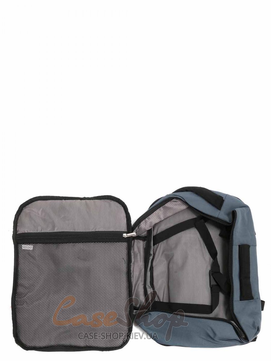 Рюкзан с расширением и креплением на чемодан оснащен двумя отделениями на молнии и внешним карманом на молнии. В одном отделении рюкзака карман-органайзер, в другом отделении рюкзака карман для ноутбука (39х26х1,5) и карман для телефона. На боковых сторонах рюкзака карманы для мелочей. Плечевые лямки рюкзака регулируются по длине.
