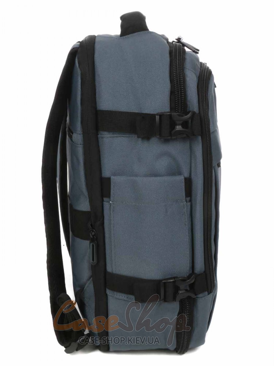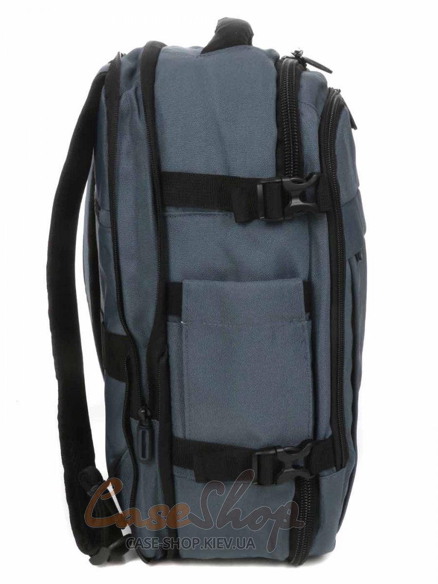 Рюкзан с расширением и креплением на чемодан оснащен двумя отделениями на молнии и внешним карманом на молнии. В одном отделении рюкзака карман-органайзер, в другом отделении рюкзака карман для ноутбука (39х26х1,5) и карман для телефона. На боковых сторонах рюкзака карманы для мелочей. Плечевые лямки рюкзака регулируются по длине.