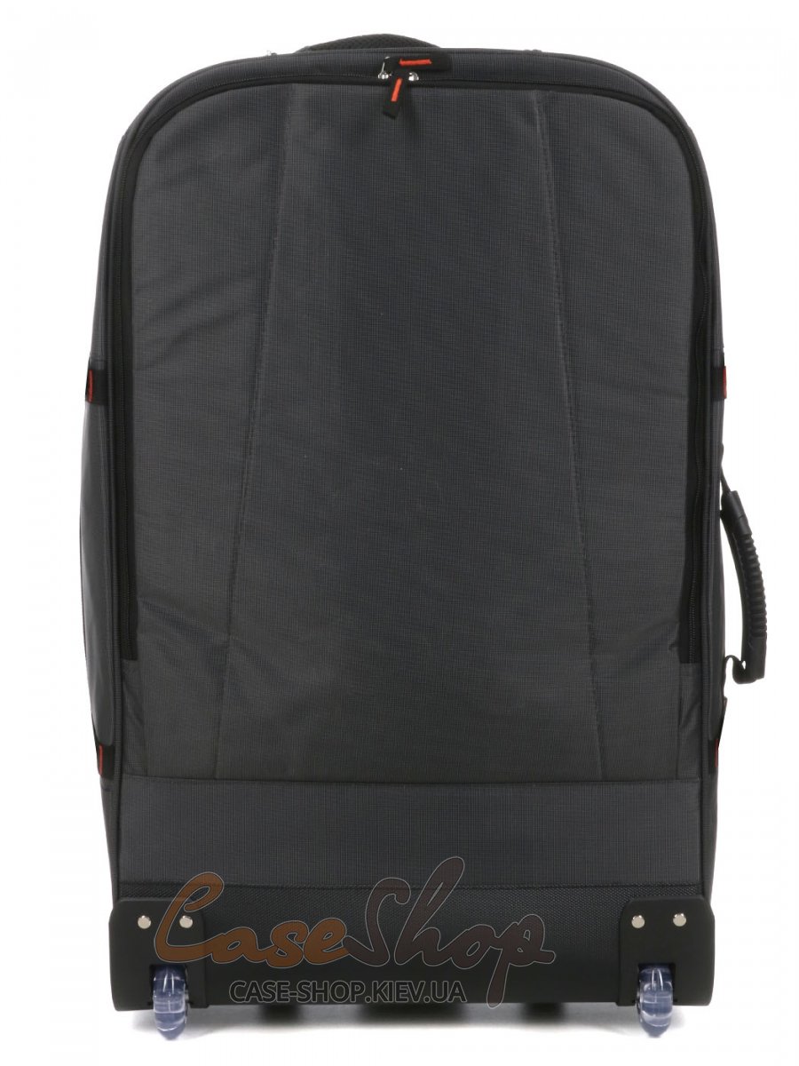 Бесшумное и плавное перемещение обеспечат 2 полиуретановых колеса на подшипниках, которые дают возможность перемещать сумку в вертикальном положении.