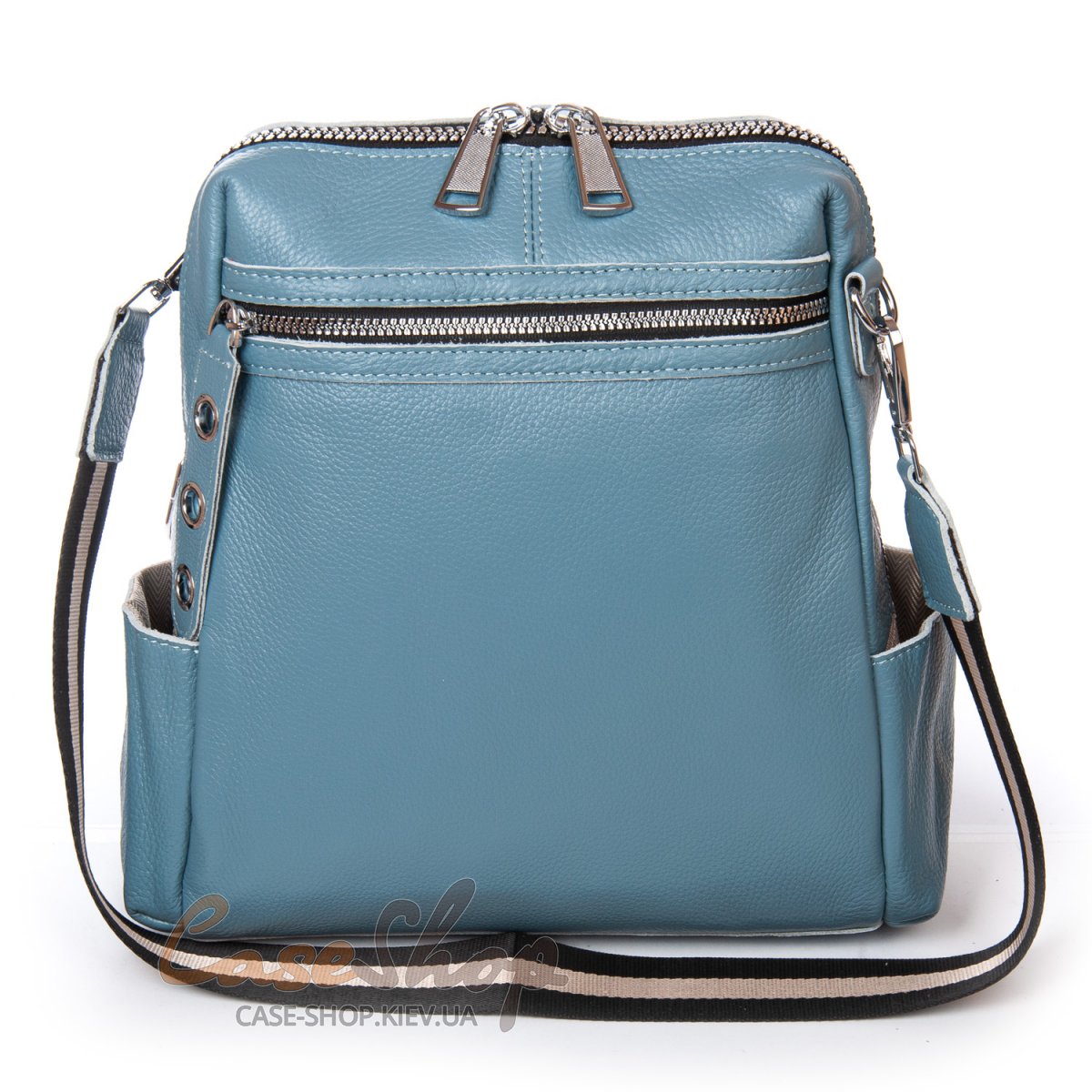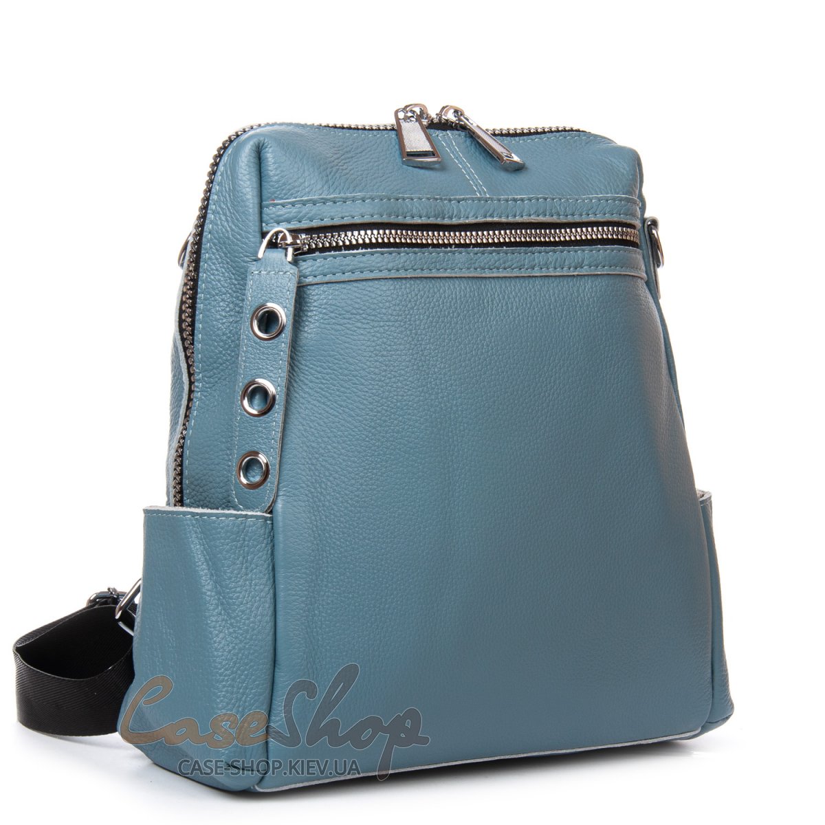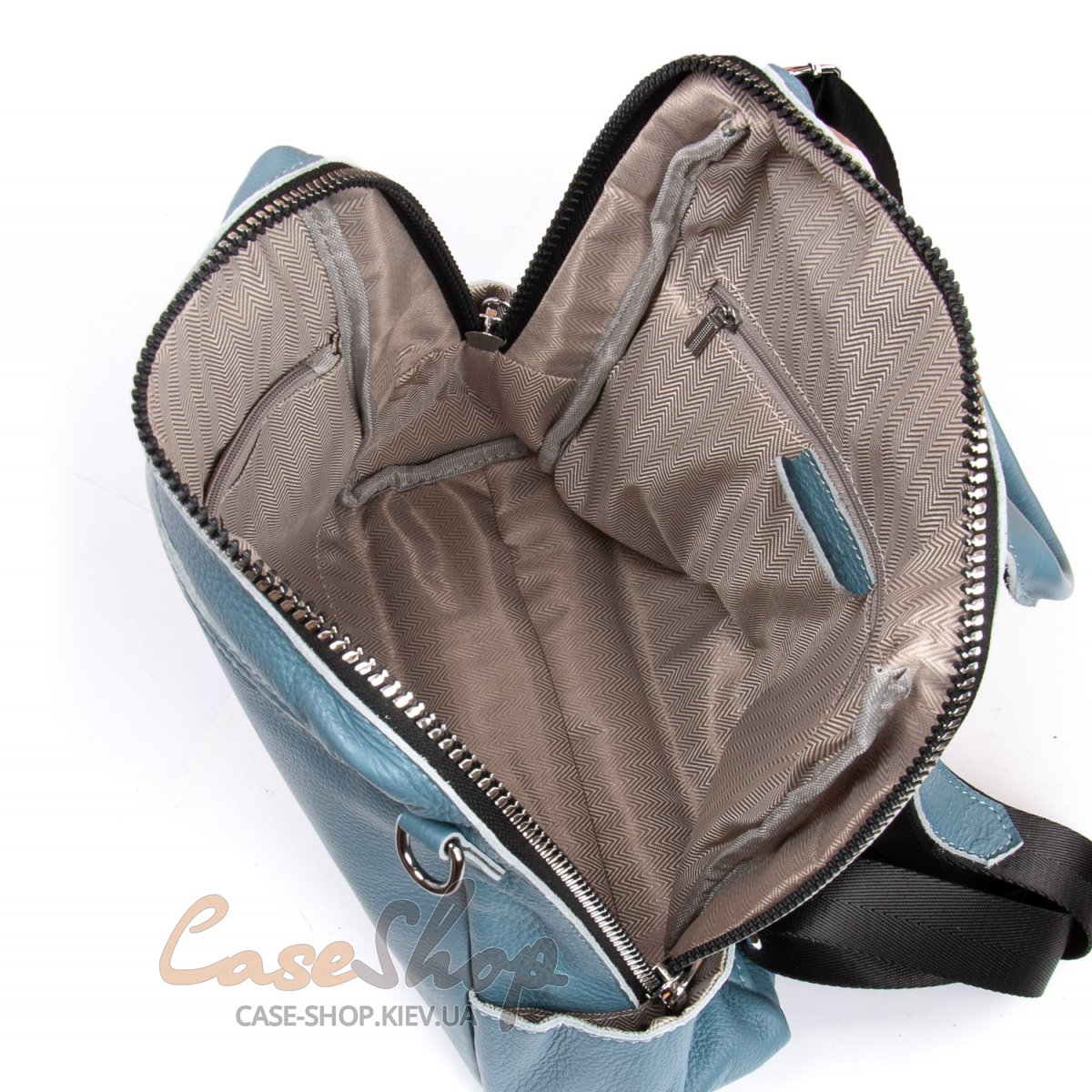 Женская сумка-рюкзак Alex Rai изготовлена из натуральной мягкой кожи. Сумку можно носить на плече на широком ремне. Сумка закрывается на молнию. Внутри сумки-рюкзака находится основное и дополнительное отделение, разделенное карманом-перегородкой на молнии и карман на молнии. Снаружи рюкзака на фасаде и оборотной стороне расположены карманы на молнии. На торцах рюкзака есть небольшие открытые карманы.