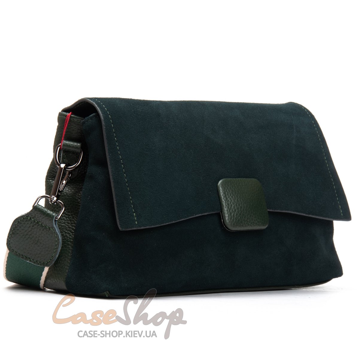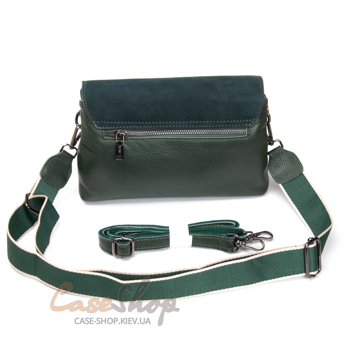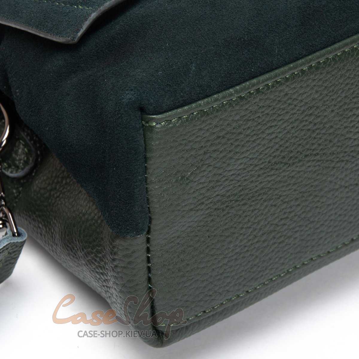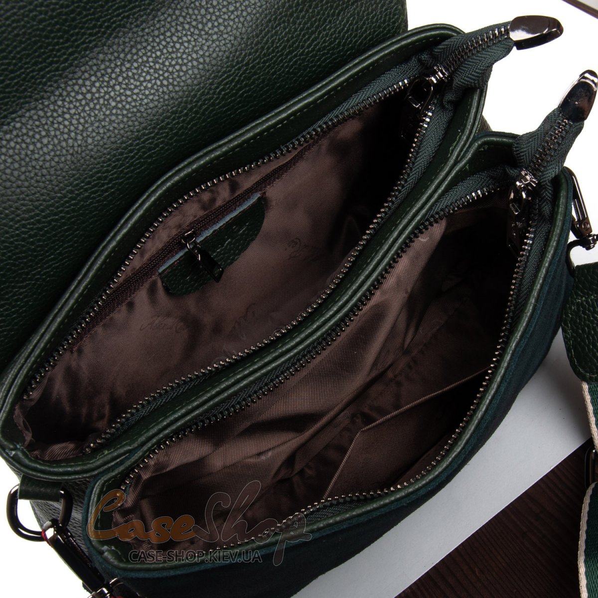 Женская сумка из натуральной мягкой кожи. Под клапаном сумки находятся два отделения, дополнительно закрывающиеся на молнии. Внутри отделений есть боковой карман на молнии и открытый карман. На наружной стороне сумки на обороте находится карман на молнии. Клапан закрывается на магните. Дно сумки уплотнено.