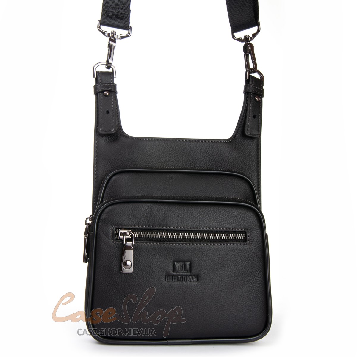 Мужская кожаная сумка-планшет Bretton изготовлена из мягкой натуральной кожи. Сумка имеет два отделения, которые закрываются на молнию. Внутри основного отделения есть открытый карман и боковой карман для смартфона. На фасаде сумки расположен карман на молнии.