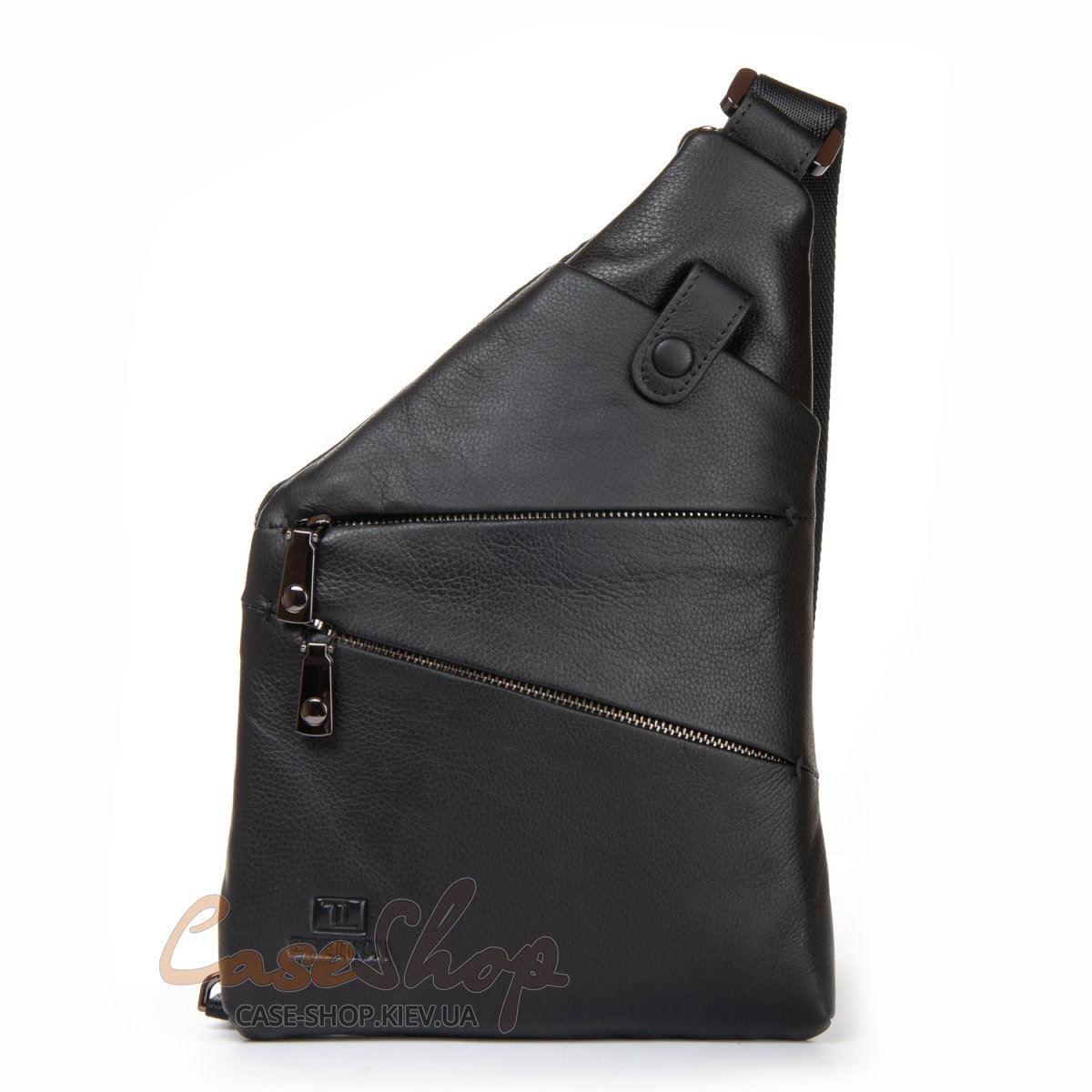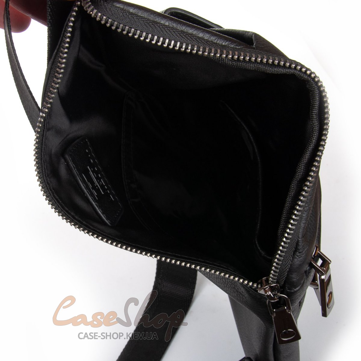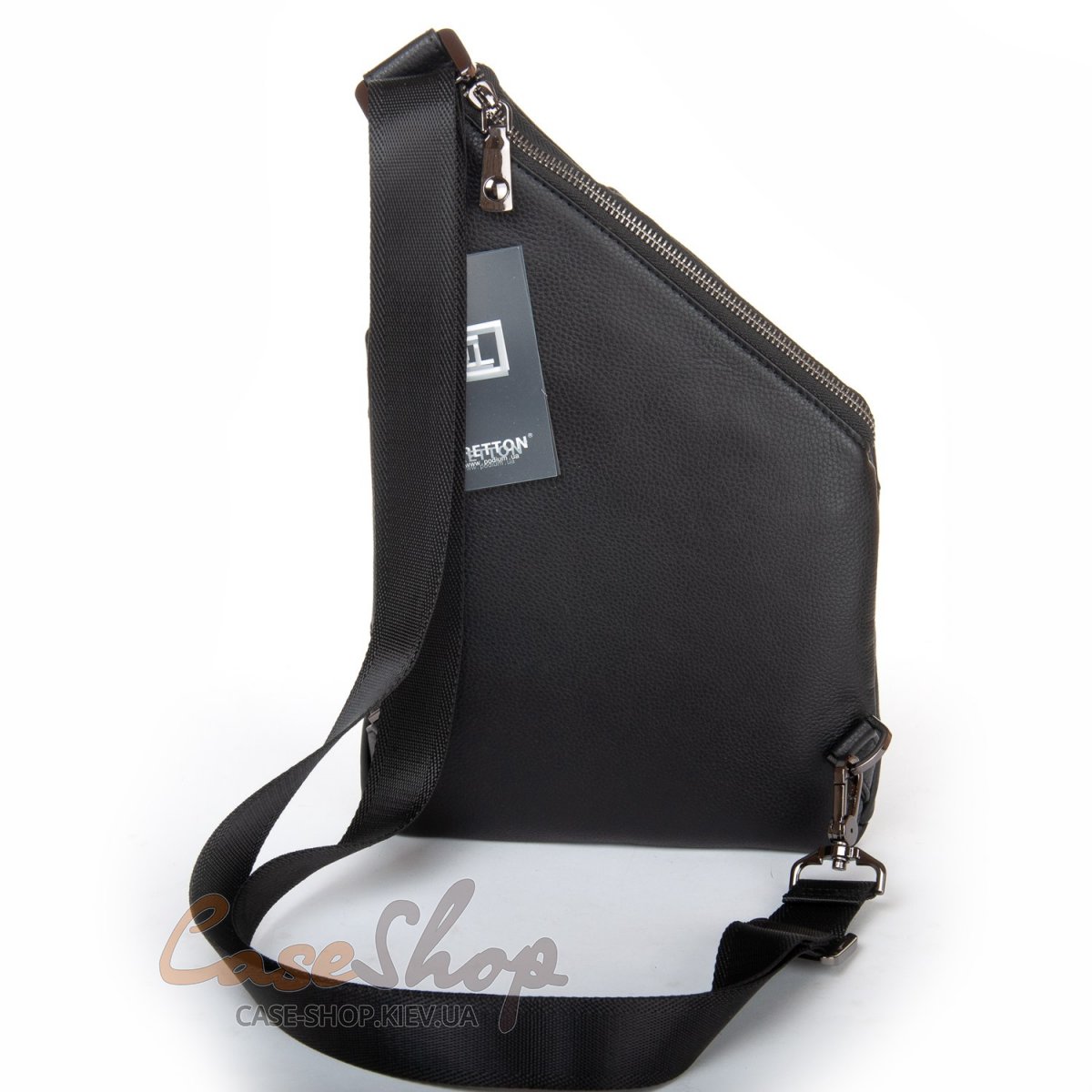 Кожаная сумка на плече Bretton в современном оригинальном дизайне. Сумка сделана из мягкой натуральной кожи. Одно отделение сумки закрывается на молнию. Внутри отделения есть открытый боковой карман и перегородка. На фасаде сумки расположены два больших кармана на молнии и карман для смартфона.