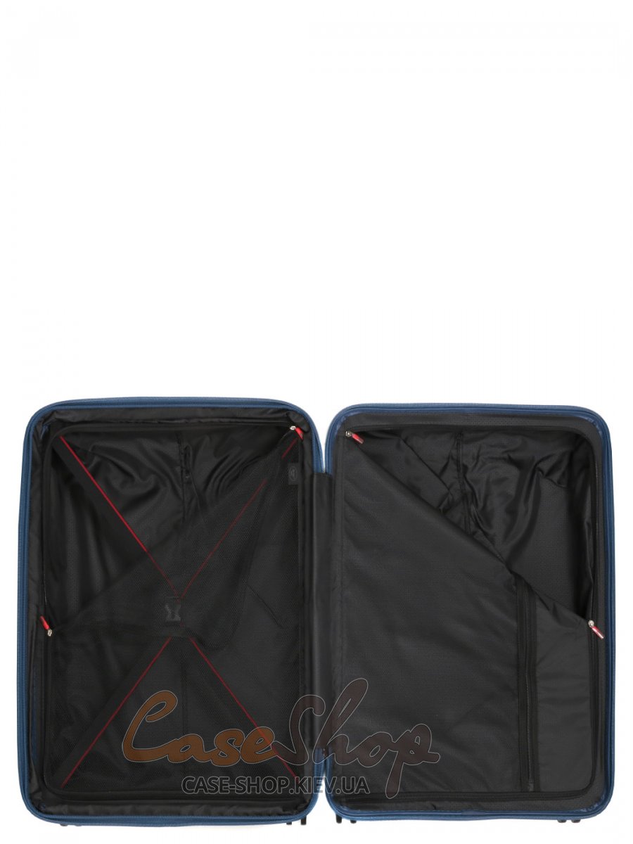 • Інтер’єр валізи: Поділений простір з фіксуючими ременями та додатковими кишенями на блискавці.