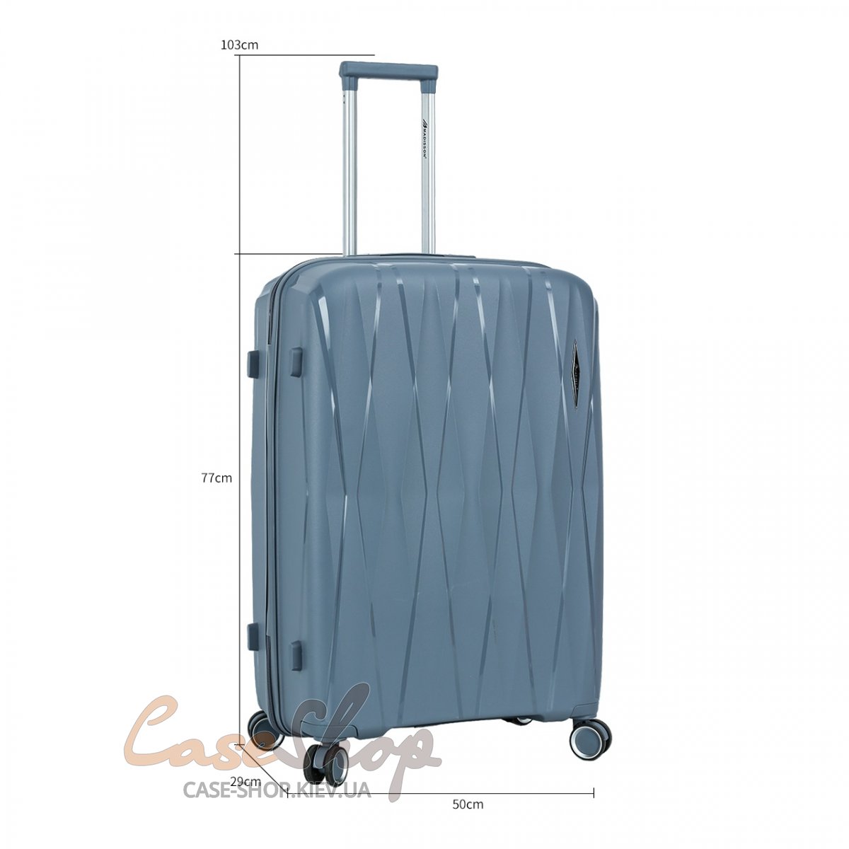 Шикарна валіза 51203/L Madisson виготовлена з дуже міцного, легкого і міцного матеріалу - поліпропілену, який характеризується високою гнучкістю і стійкістю до великих навантажень на корпус (до 250 кг), про що свідчать численні випробування, проведені у Франції.