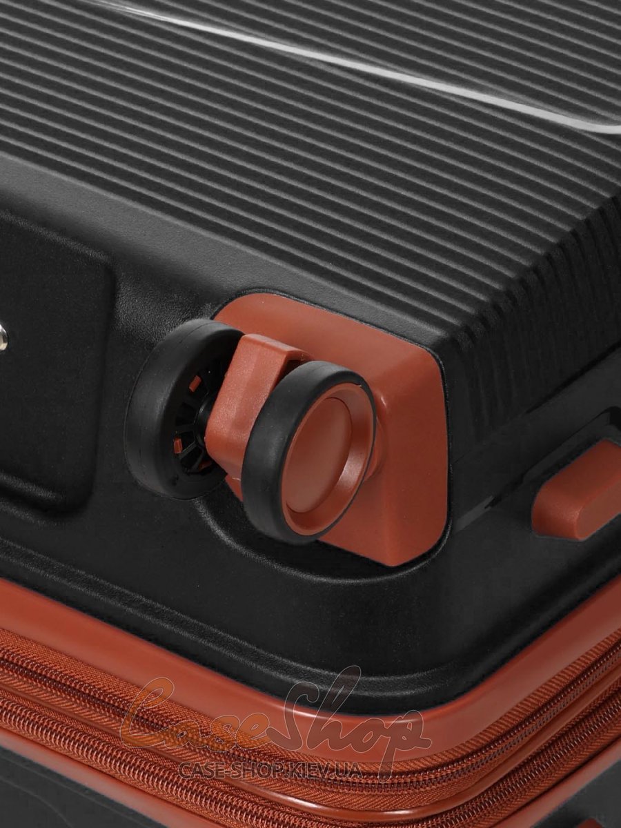 Безшумне і плавне переміщення забезпечують поліуретанові колеса на підшипниках, що обертаються на 360 град, надаючи валізі додаткову маневреність і даючи можливість переміщати його у вертикальному положенні.