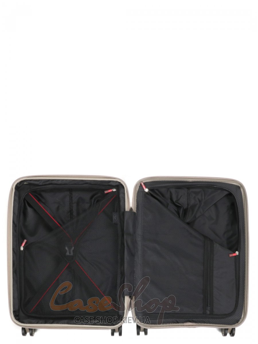 • Інтер’єр валізи: Поділений простір з фіксуючими ременями та додатковими кишенями на блискавці.