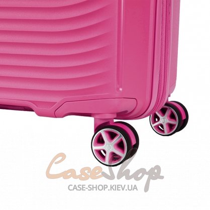 Безшумне і плавне переміщення забезпечують поліуретанові колеса на підшипниках, що обертаються на 360 град, надаючи валізі додаткову маневреність і даючи можливість переміщати його у вертикальному положенні.