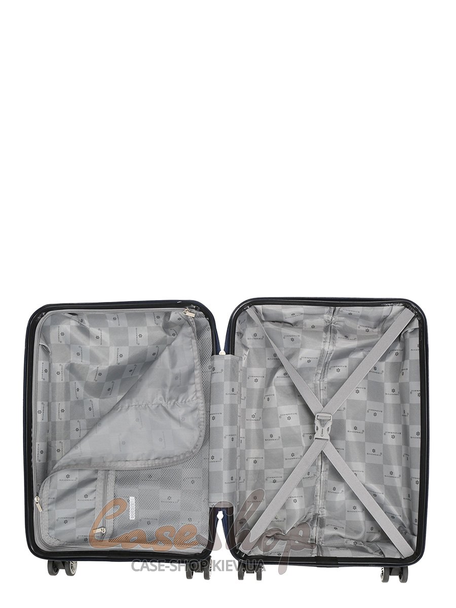 Усередині валізи є 2 відділення, одне з внутрішніми ременями кріплення багажу, інше закривається на блискавку.верху валізи розташована ручка для перенесення.