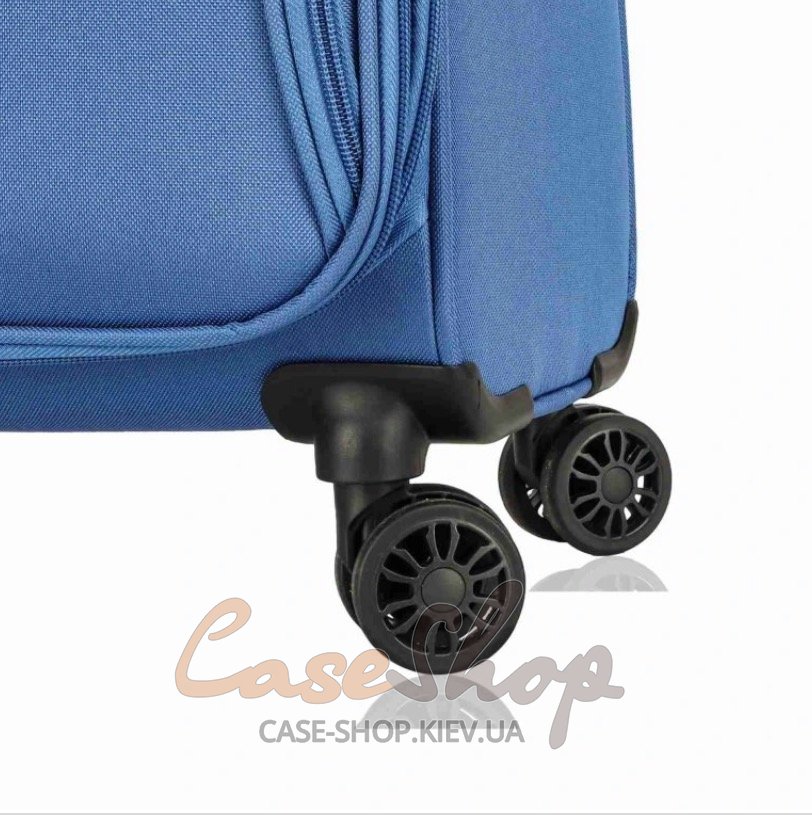 Безшумне і плавне переміщення забезпечать 4 подвійні поліуретанові колеса на підшипниках, що обертаються на 360 град, надаючи валізі додаткову маневреність і даючи можливість переміщати її у вертикальному положенні.
