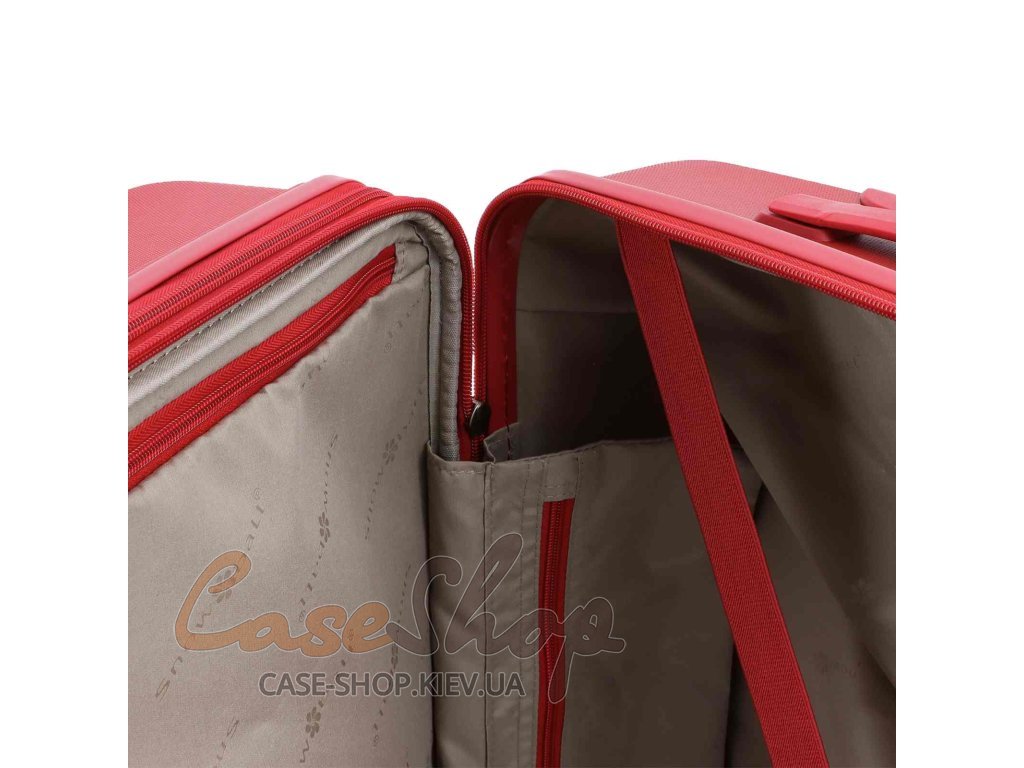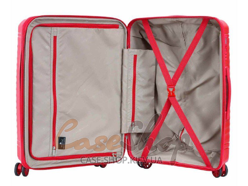 Усередині валізи є 2 відділення, одне з внутрішніми ременями кріплення багажу, інше закривається на блискавку.верху валізи розташована ручка для перенесення.
