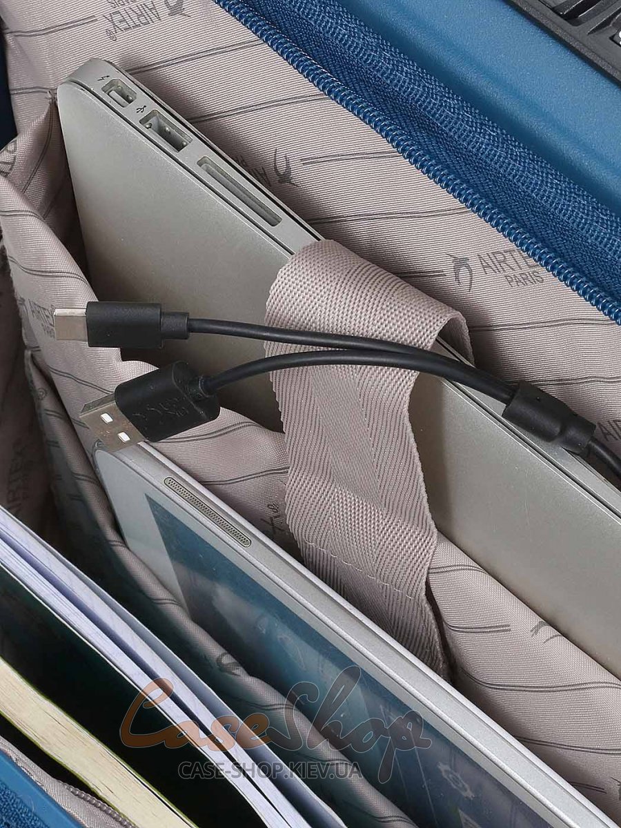 В розмірі S валіза має зовнішнє відділення на блискавці з кишенею для ноутбука