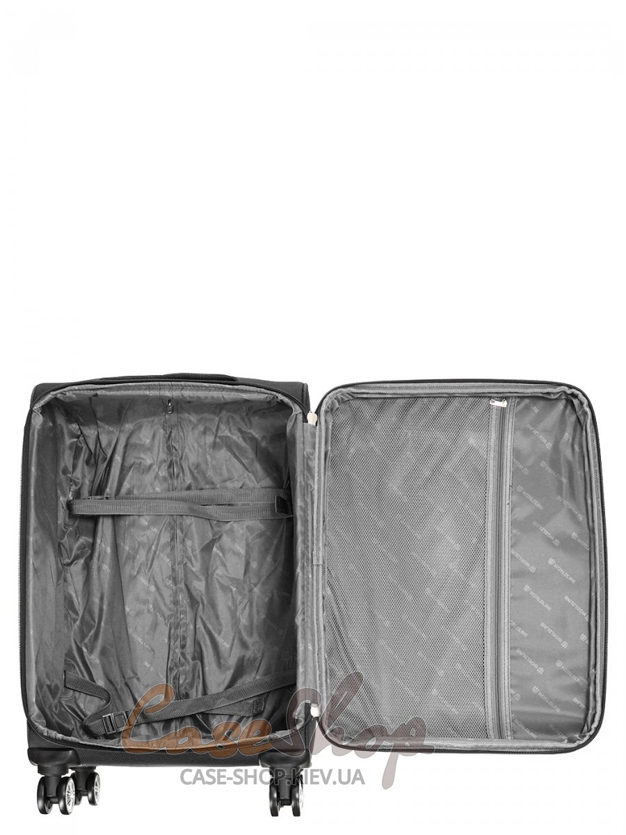 Всередині валізи одне відділення з внутрішніми ременями кріплення багажу та закривається на блискавку.