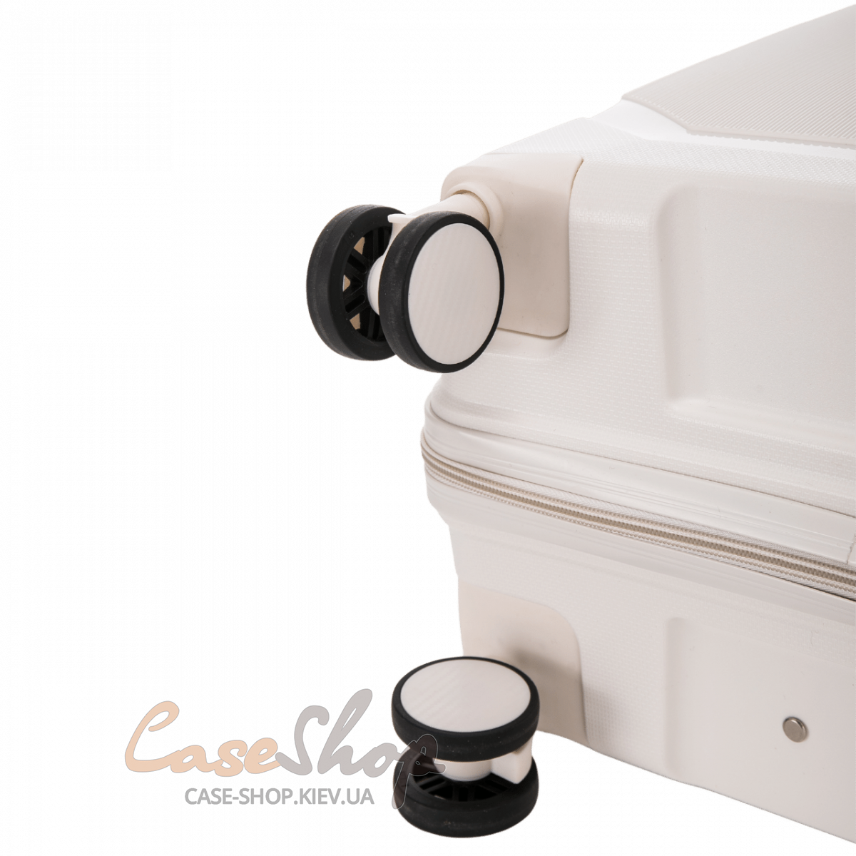 Безшумне і плавне переміщення забезпечують поліуретанові колеса на підшипниках, що обертаються на 360 град, надаючи валізах додаткову маневреність і даючи можливість переміщати його у вертикальному положенні.