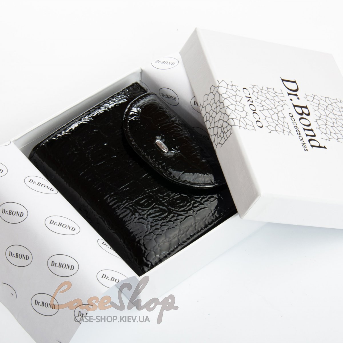 Жіночий компактний шкіряний гаманець Dr.Bond серії Croco. Гаманець виготовлений з лакової шкіри. Клапан закривається на магніт. Всередині гаманця знаходяться 2 відкритих відділення для банкнот, 3 великі відкриті кишені, 11 слотів для візитних карток (один з них прозорий). Зовні гаманця на торці є кишеня-монетниця на блискавці.