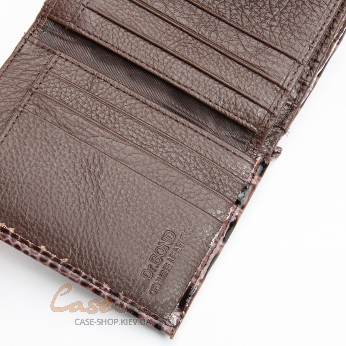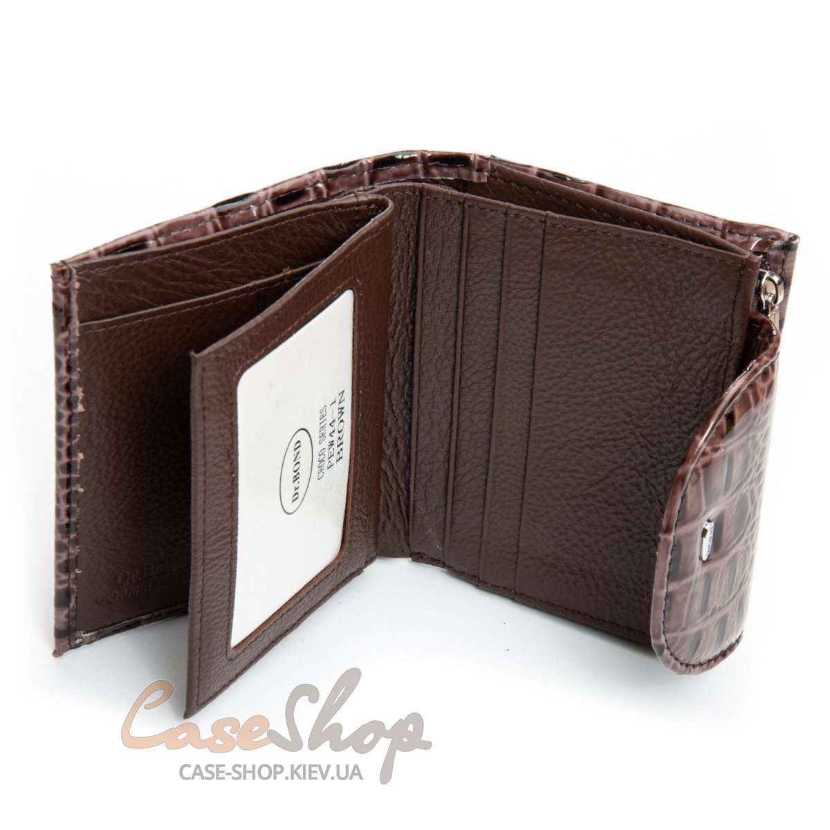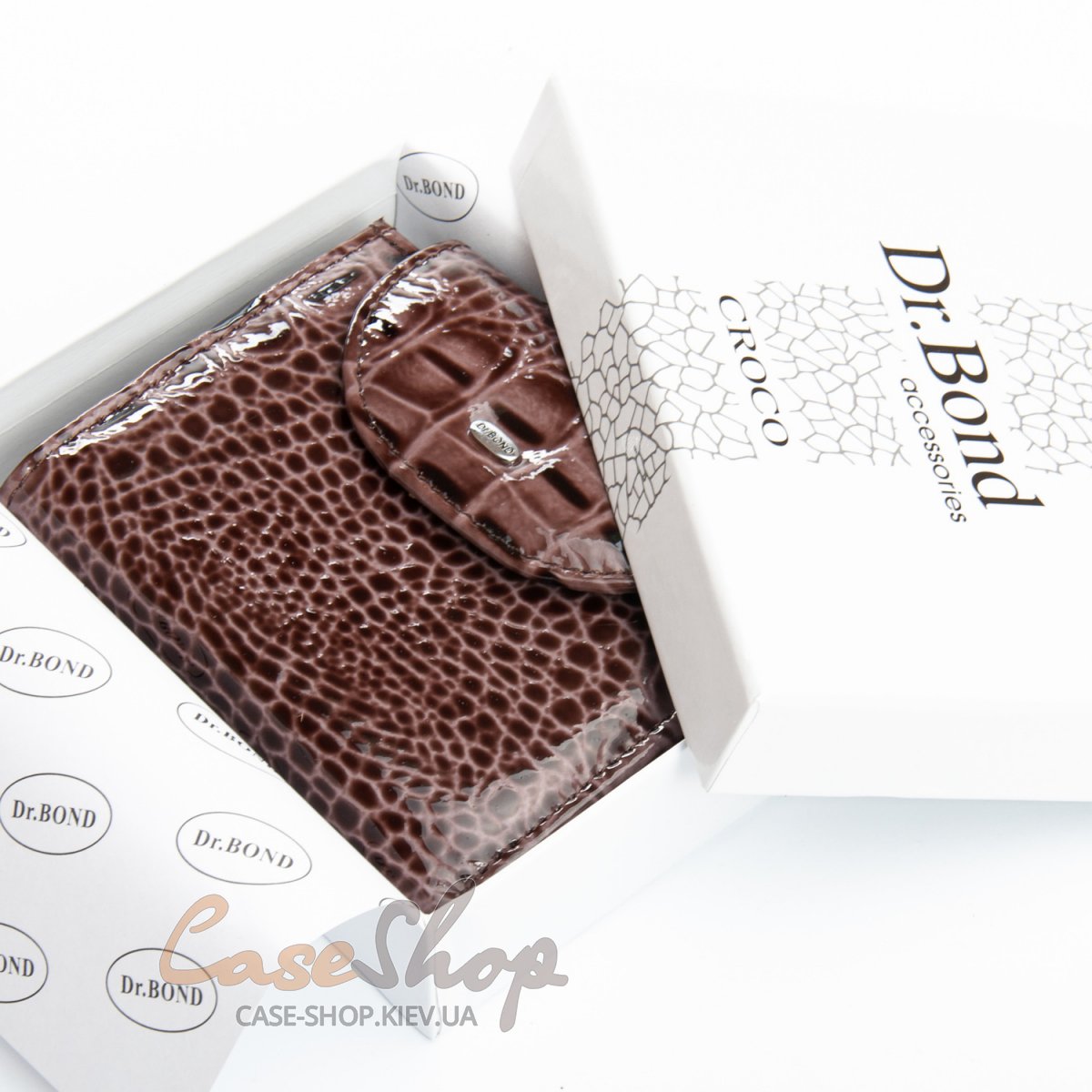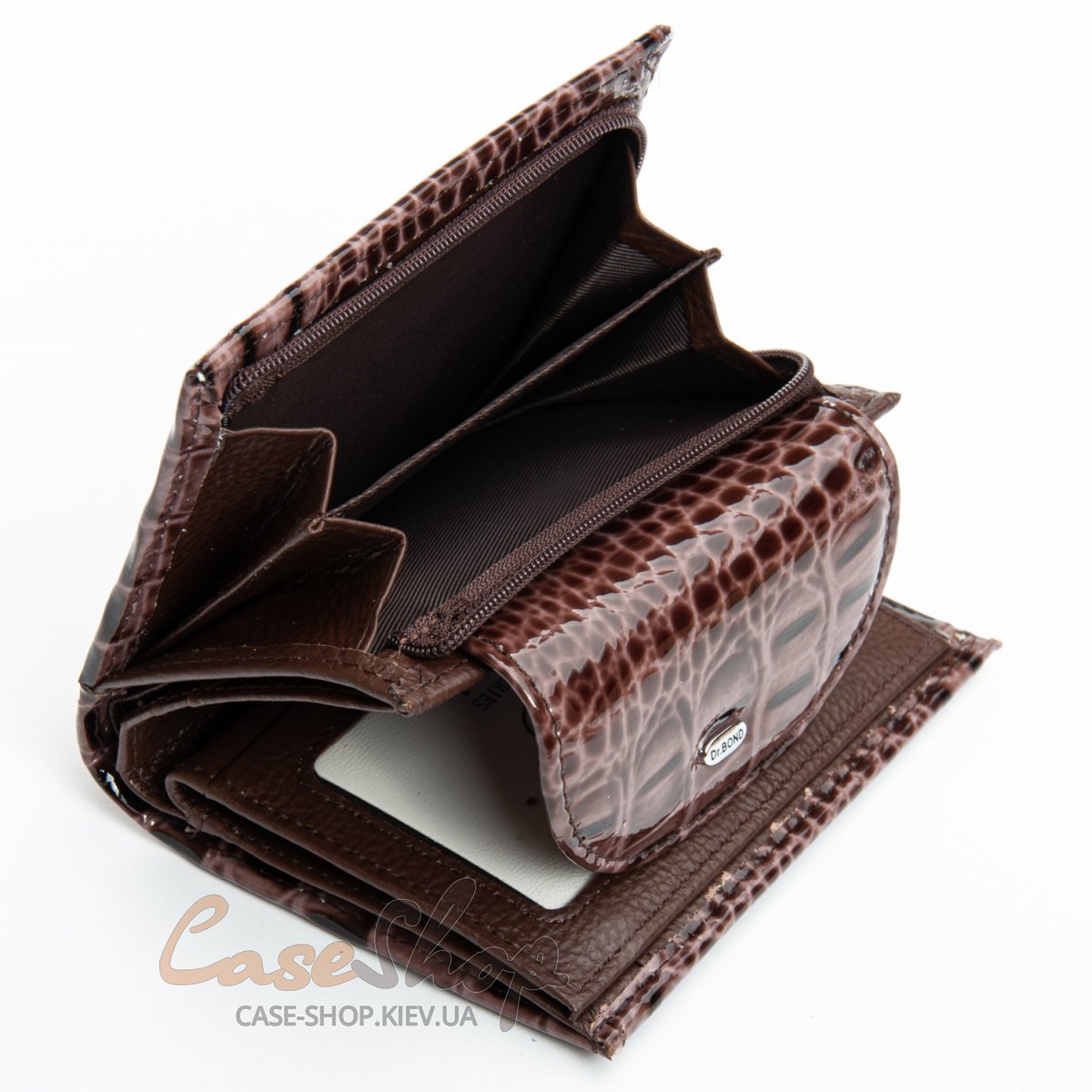 Жіночий компактний шкіряний гаманець Dr.Bond серії Croco. Гаманець виготовлений з лакової шкіри. Клапан закривається на магніт. Всередині гаманця знаходяться 2 відкритих відділення для банкнот, 3 великі відкриті кишені, 11 слотів для візитних карток (один з них прозорий). Зовні гаманця на торці є кишеня-монетниця на блискавці.