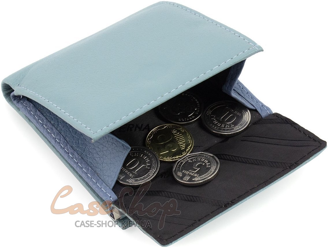 Зручна модель гаманця подвійного складання з фіксацією на кнопці. Компактний гаманець займає мало місця усередині сумочки або кишені. Усередині гаманця є безліч відділень для карт та відділення для купюр, зовні розташована монетниця на магниті.