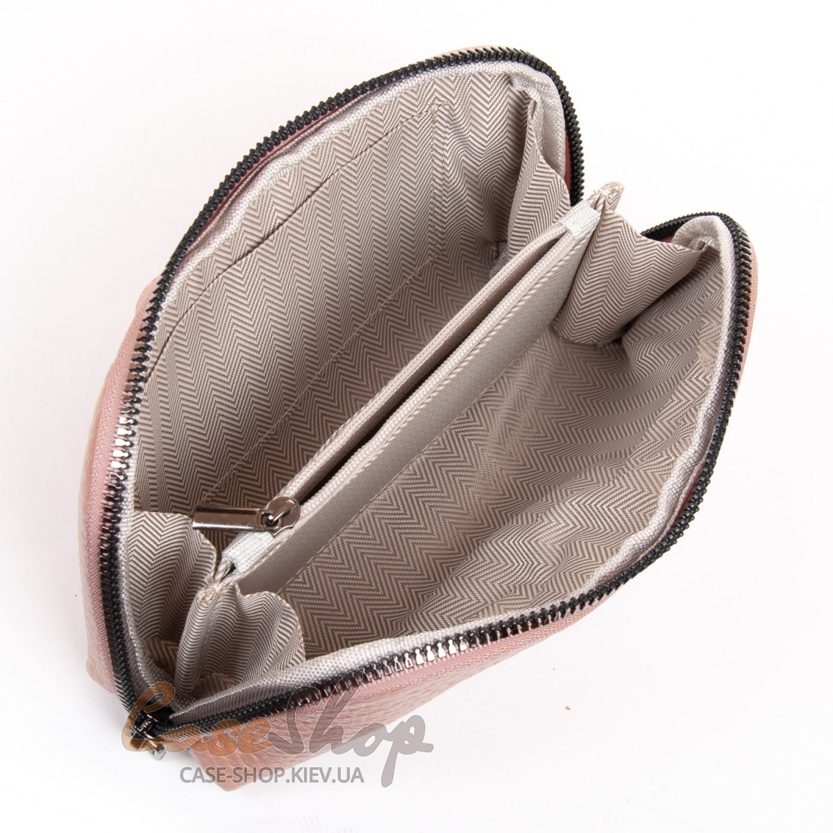 Жіноча шкіряна косметичка на одно відділення закривається на блискавку. Усередині знаходиться подвійне відділення, розділене кишенею-перегородкою на блискавці та бічна відкрита кишеня.