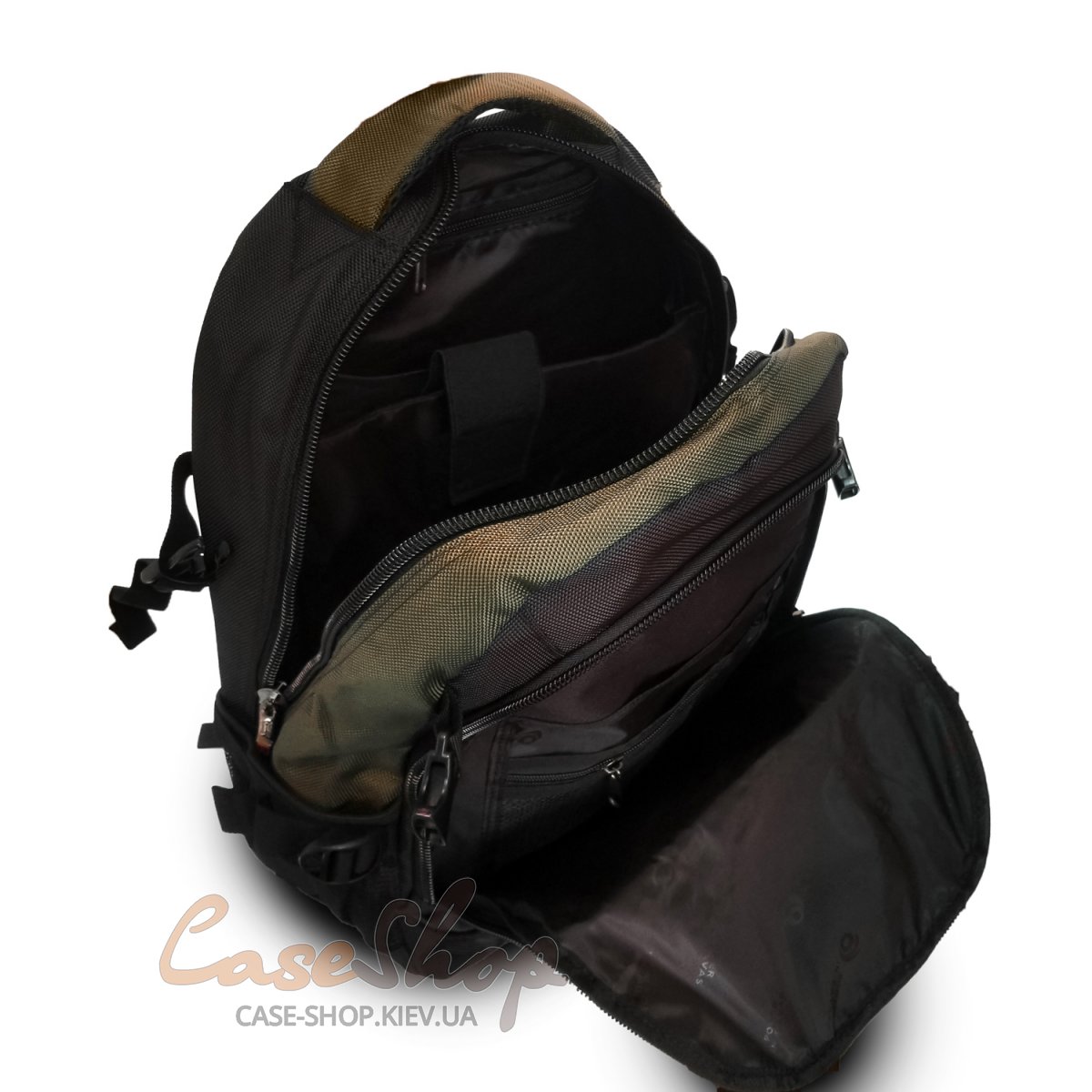 Внутрі рюкзака два відділення на блискавці В одному відділенні рюкзака органайзер, а в іншому відділенні кишеню для телефону і кишеню на телефоні. Плечові лямки регулюються по довжині.