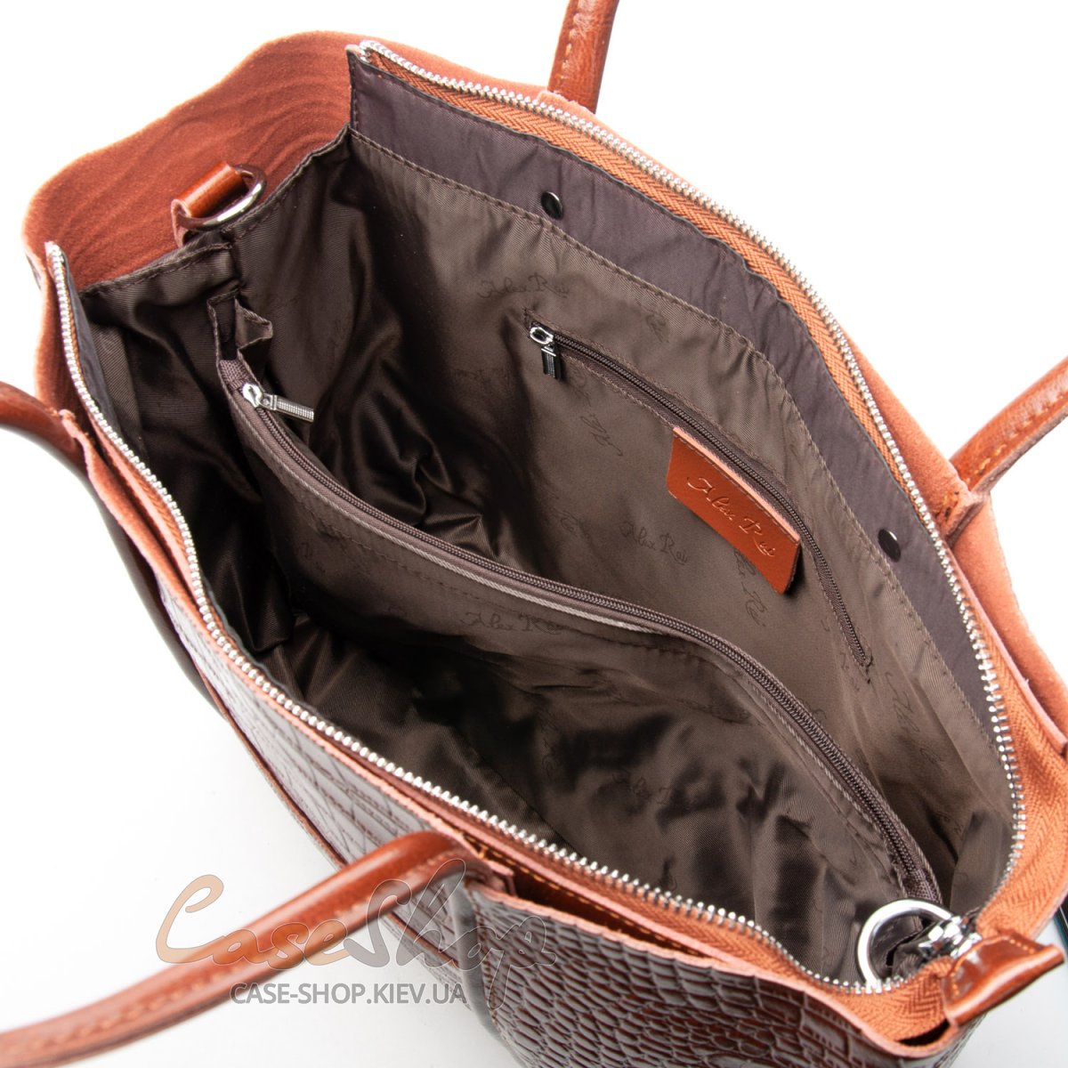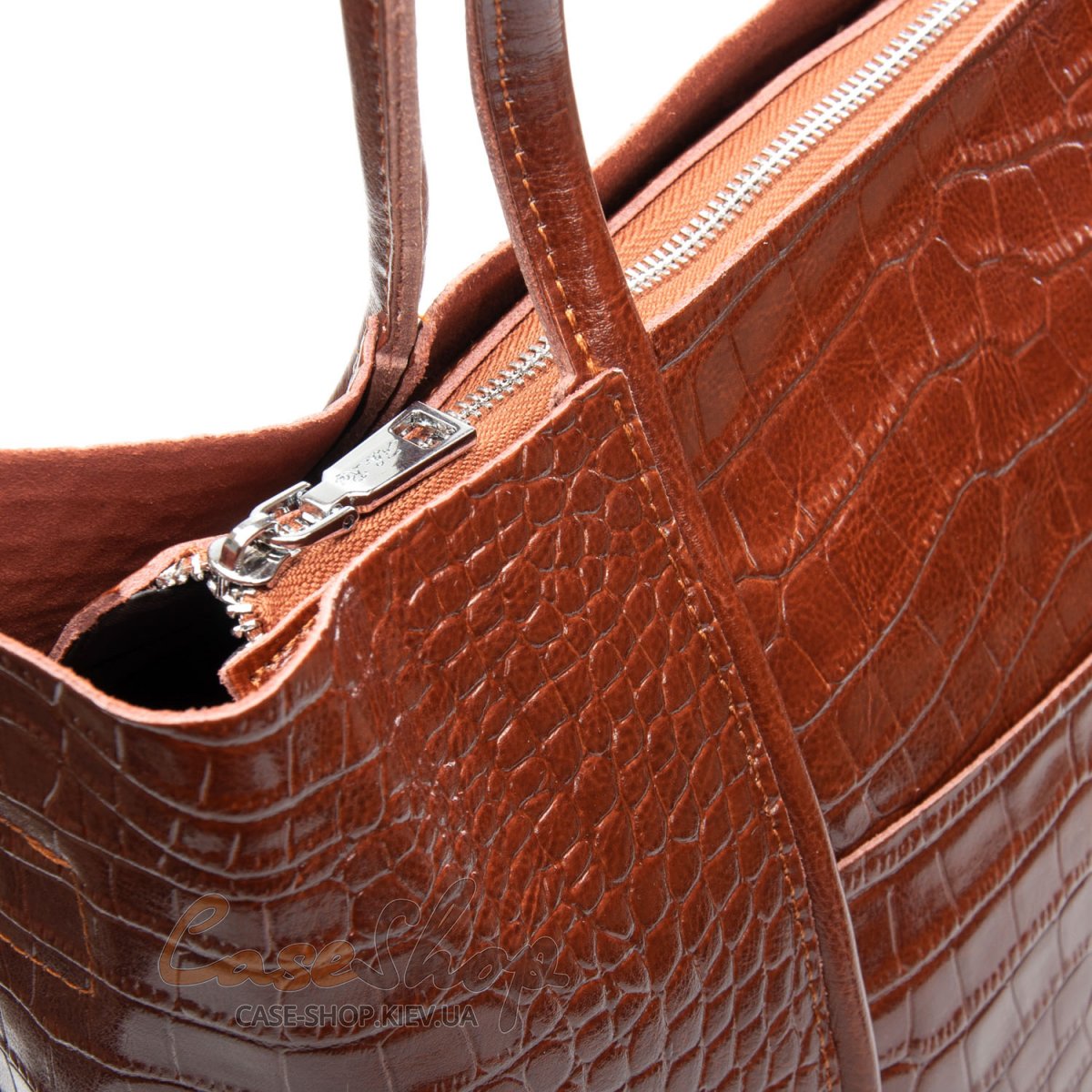 Жіноча шкіряна сумка виготовлена з натуральної щільної шкіри. Сумка застібається на блискавку. Всередині сумки знаходиться подвійне відділення, розділене кишенею-перегородкою на блискавці, відкрита кишеня і бічна кишеня на блискавці. Зовні сумки на фасаді є відкрита кишеня, а на зворотному боці кишеня на блискавці. Сумка має жорстке дно на металевих ніжках.