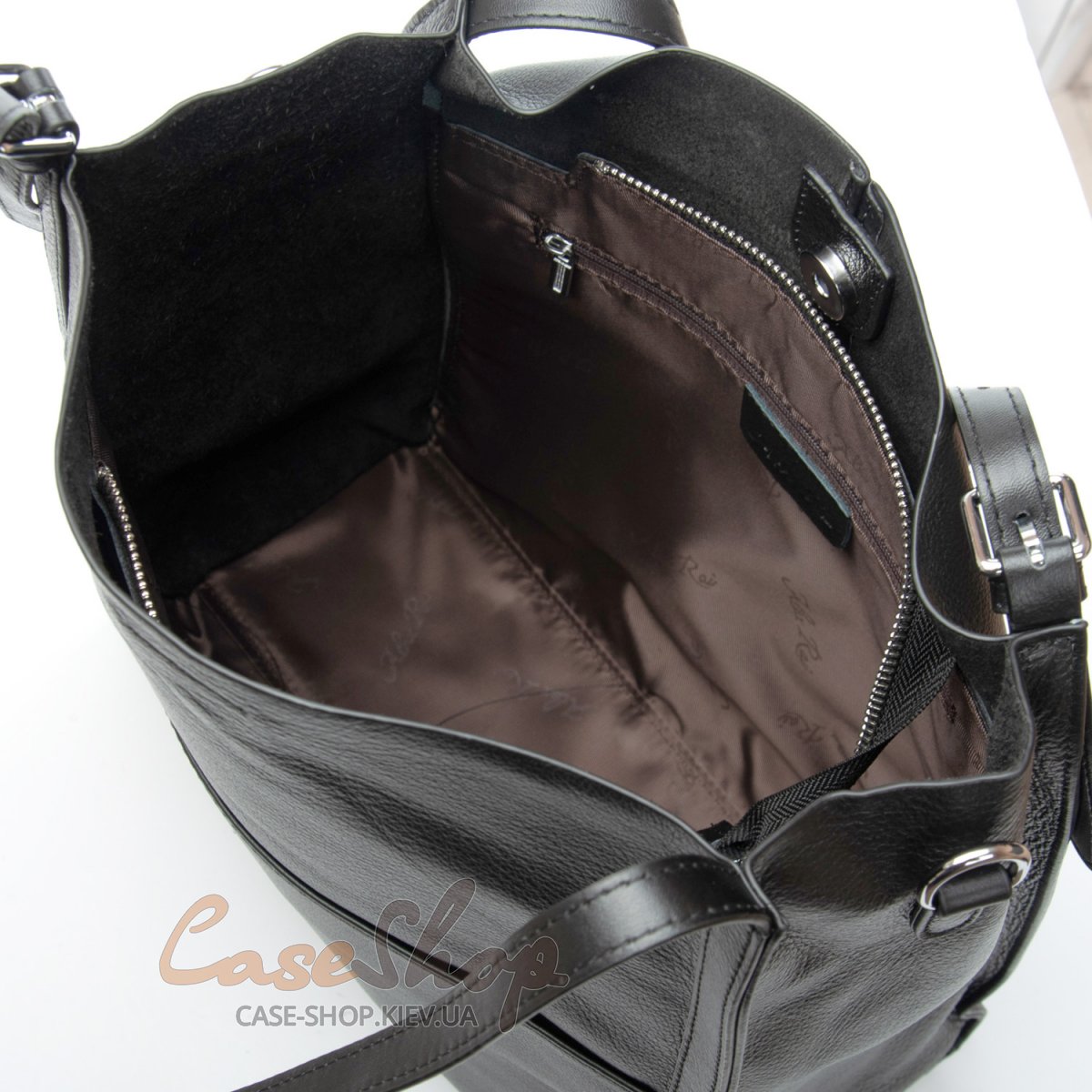 Жіноча шкіряна сумка-шопер виготовлена з натуральної м'якої шкіри. Сумка зачиняється на магнітну кнопку. Всередині сумки знаходяться три відділення, центральне додатково зачиняється на блискавку. Всередині центрального відділення є кишеня на блискавці та відкрита кишеня. Зовні сумки на фасаді є велика відкрита кишеня. Сумка має ущільнене дно.