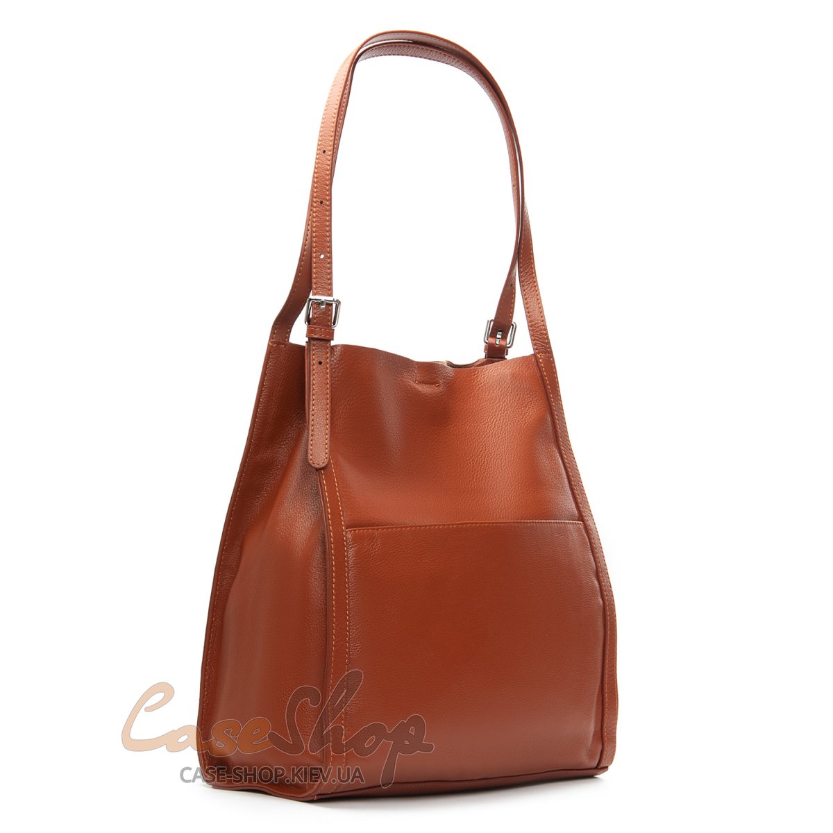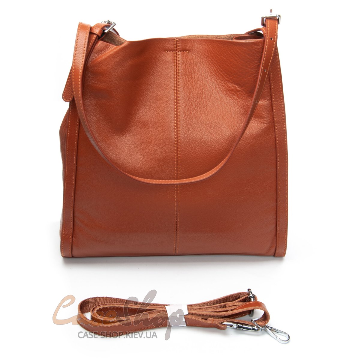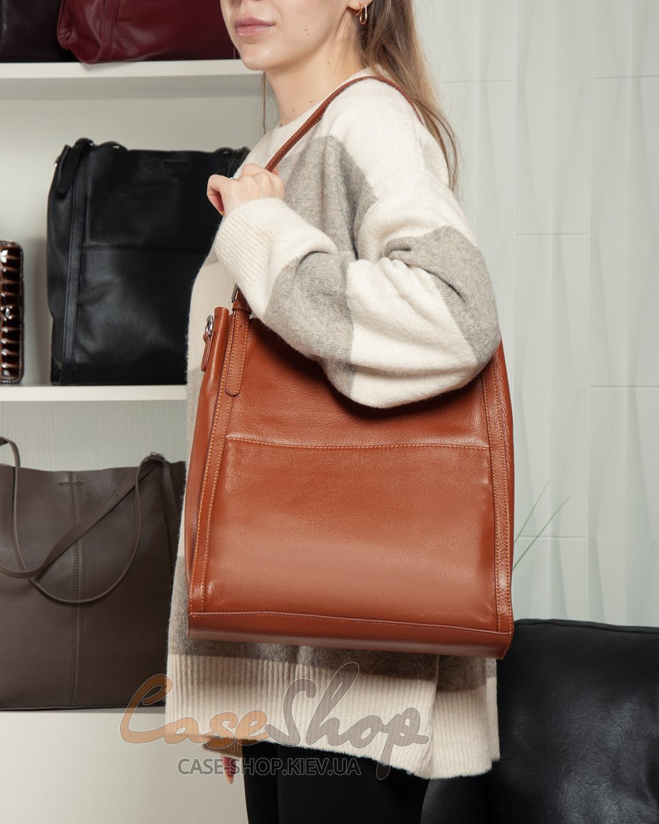 Жіноча шкіряна сумка-шопер виготовлена з натуральної м'якої шкіри. Сумка зачиняється на магнітну кнопку. Всередині сумки знаходяться три відділення, центральне додатково зачиняється на блискавку. Всередині центрального відділення є кишеня на блискавці та відкрита кишеня. Зовні сумки на фасаді є велика відкрита кишеня. Сумка має ущільнене дно.