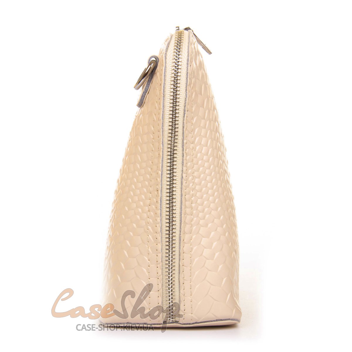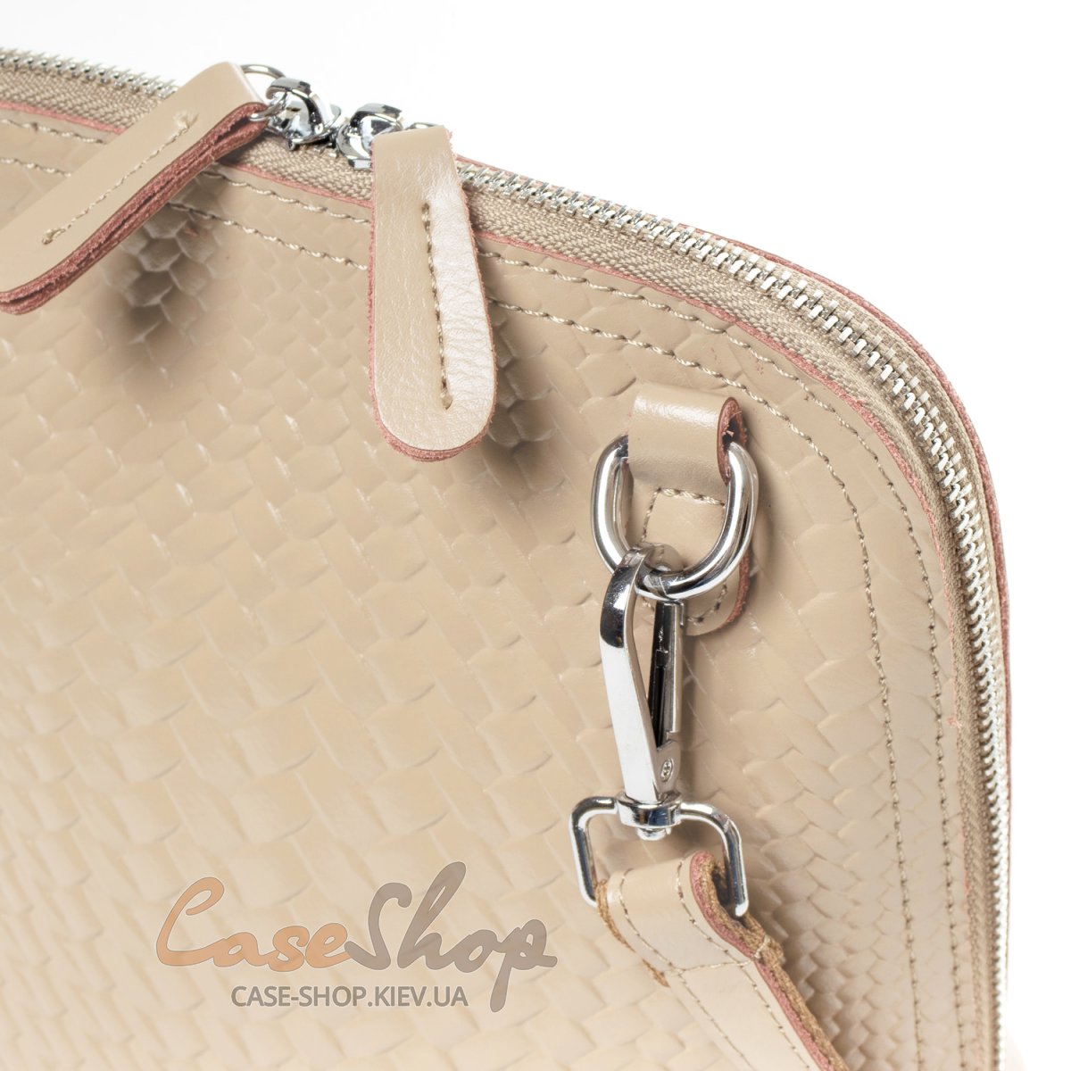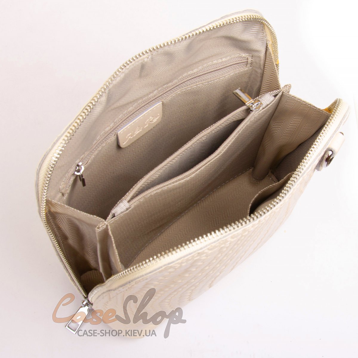 Шкіряний жіноча сумочка закривається на блискавку. Усередині сумки знаходиться подвійне відділення, розділене кишенею-перегородкою на блискавки, відкрита кишеня для смартфону і кишеня на блискавці. Зовні клатча на зворотному боці розташована кишеня на блискавці.