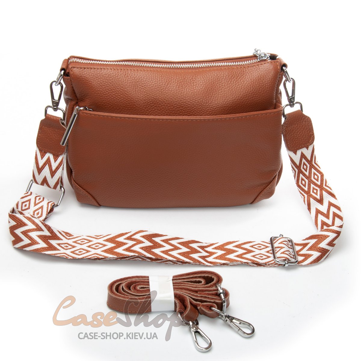 У комплекті до сумки йде регульований плечовий шкіряний та широкий пасок з тканини.