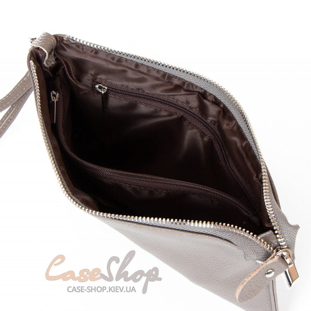 Сумочка з натуральної шкіри в оригінальному дизайні, невеличка за розміром зі зручним функціоналом на одне відділення на блискавці. В комплекті довгий ремінь для носіння через плече та ременець для носіння в руці.