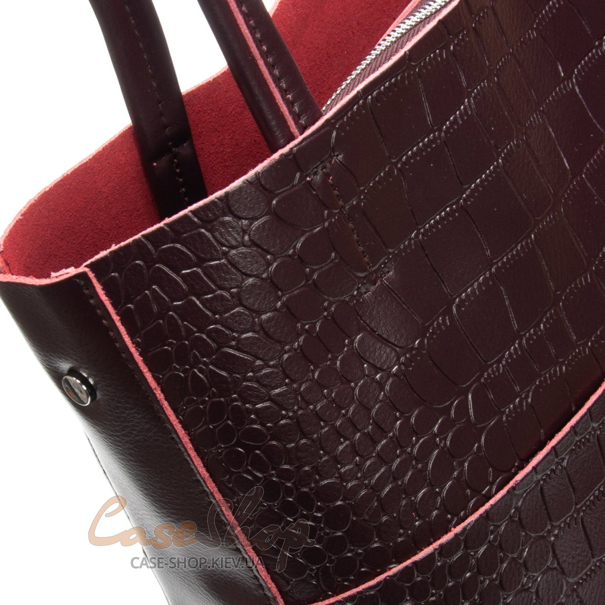 Жіноча шкіряна сумка-шопер виготовлена з натуральної щільної шкіри. Сумка застібається на блискавку. Всередині сумки знаходиться подвійне відділення, розділене кишенею-перегородкою на блискавці, відкрита кишеня і бічна кишеня застібаються на блискавку. Зовні сумки на фасаді і зворотній стороні є відкриті плоскі кишені.