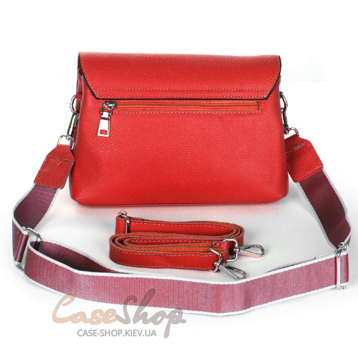 Жіноча сумка виготовлена із натуральної м'якої шкіри. Під клапаном сумки знаходяться два відділення, які додатково закриваються на блискавці. Усередині відділень є бічна кишеня на блискавці та відкрита кишеня. На зовнфшній стороні сумки на звороті знаходиться кишеня на блискавці. Клапан закривається на магніт. Дно сумки ущільнене.